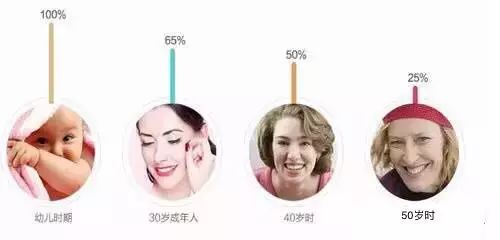 但是皮膚的玻尿酸從 25 歲以后就開始流失,30歲時只剩下幼年期65% ,60歲時只剩下25% ,因而引發皮膚干燥、出現干紋。